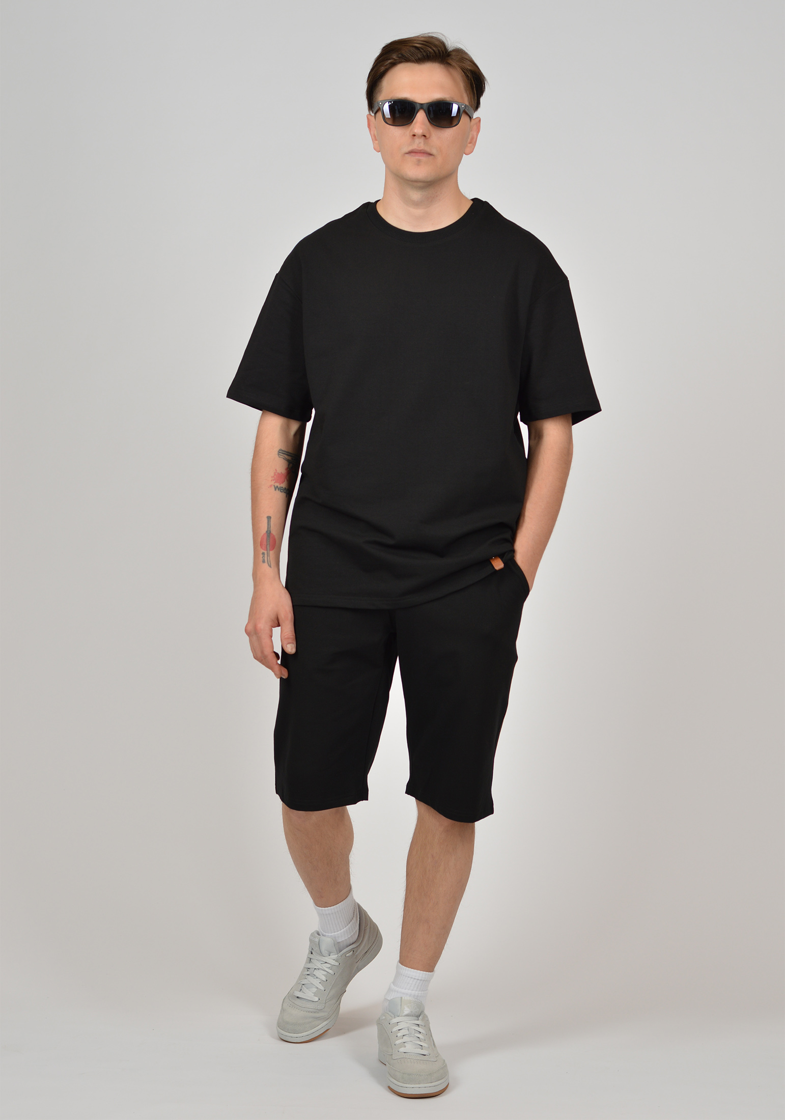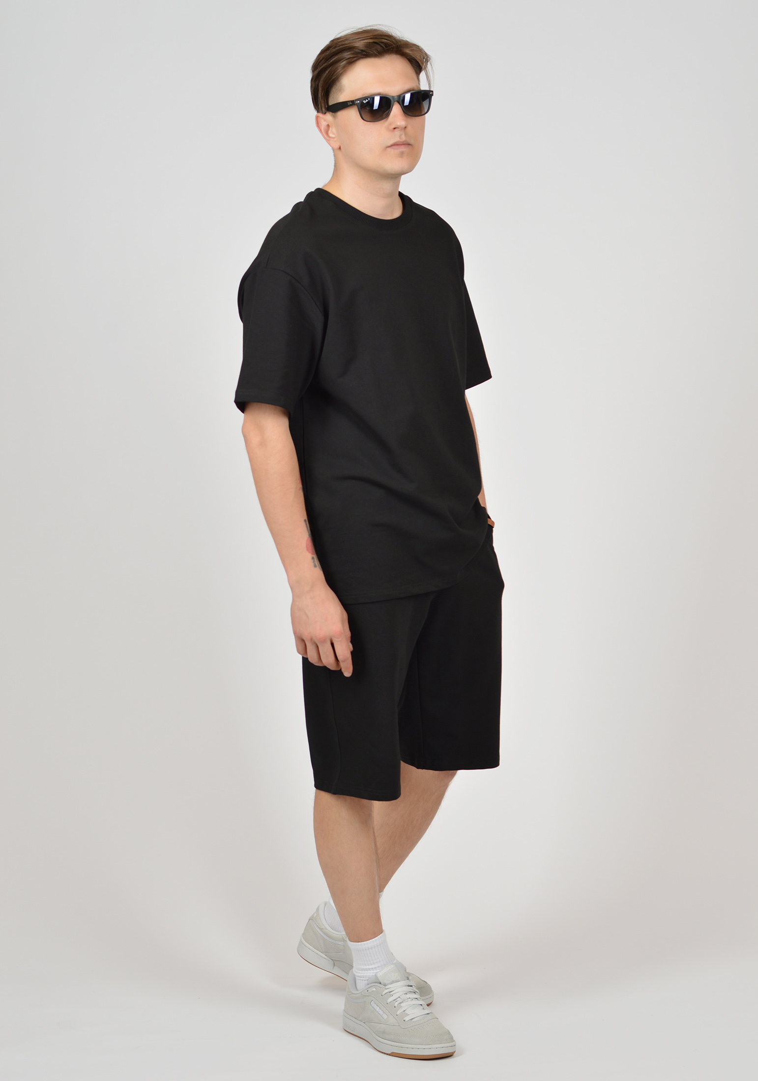 Стильный мужской костюм, состоящий из футболки и шорт выполнен из высококачественного футера 2-ух нитки без начеса. Удобная и стильная мужская футболка в стиле OVERSIZE. Модель прямого силуэта, свободного кроя, с круглым вырезом воротника и спущенной линией плеча. Рельефная эластичная трикотажная резинка по горловине изделия. Стильные трикотажные мужские шорты, прямого кроя, на поясе удобная и широкая резинка со шнуром, что позволяет дополнительно регулировать изделие по объему. У данной модели два вместительных боковых кармана. Наш костюм - идеальный выбор для тех, кто ведет активный образ жизни, занимается спортом, бегом, фитнесом, а также для прогулок, путешествий и отдыха. Этот комплект также станет отличным вариантом для домашнего использования или как сменная форма для занятий физкультурой в школе. Он идеально подходит для летнего сезона, а также для домашнего отдыха. Современный молодежный стиль придает образу актуальность, а универсальный крой и посадка делают костюм удобным для мужчин с разным телосложением. Трендовый дизайн делает наш костюм стильной частью повседневного мужского гардероба. Свободный крой не стесняет Ваших движений. Мужской костюм с шортами и футболкой - это стиль, комфорт и практичность. комплект станет лучшим подарком мужу, сыну, любимому или папе. Гладить с изнанки. Стирка при t не более 30С. Деликатный отжим, отбеливание запрещено. При соблюдении наших несложных правил ухода одежда DS будет радовать Вас долгое время!