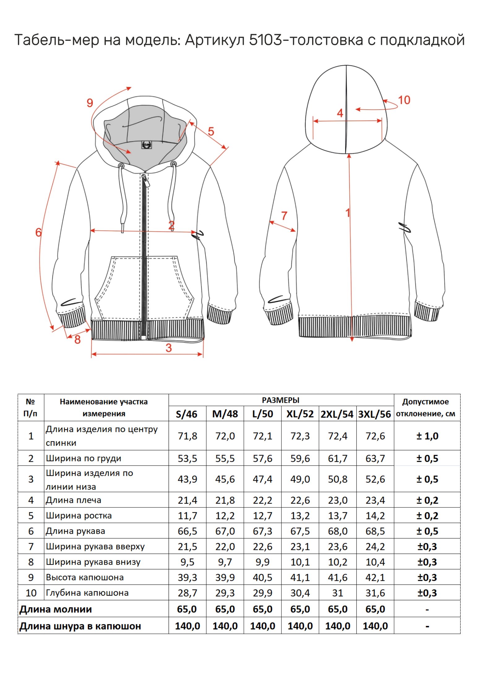 Таблица размеров