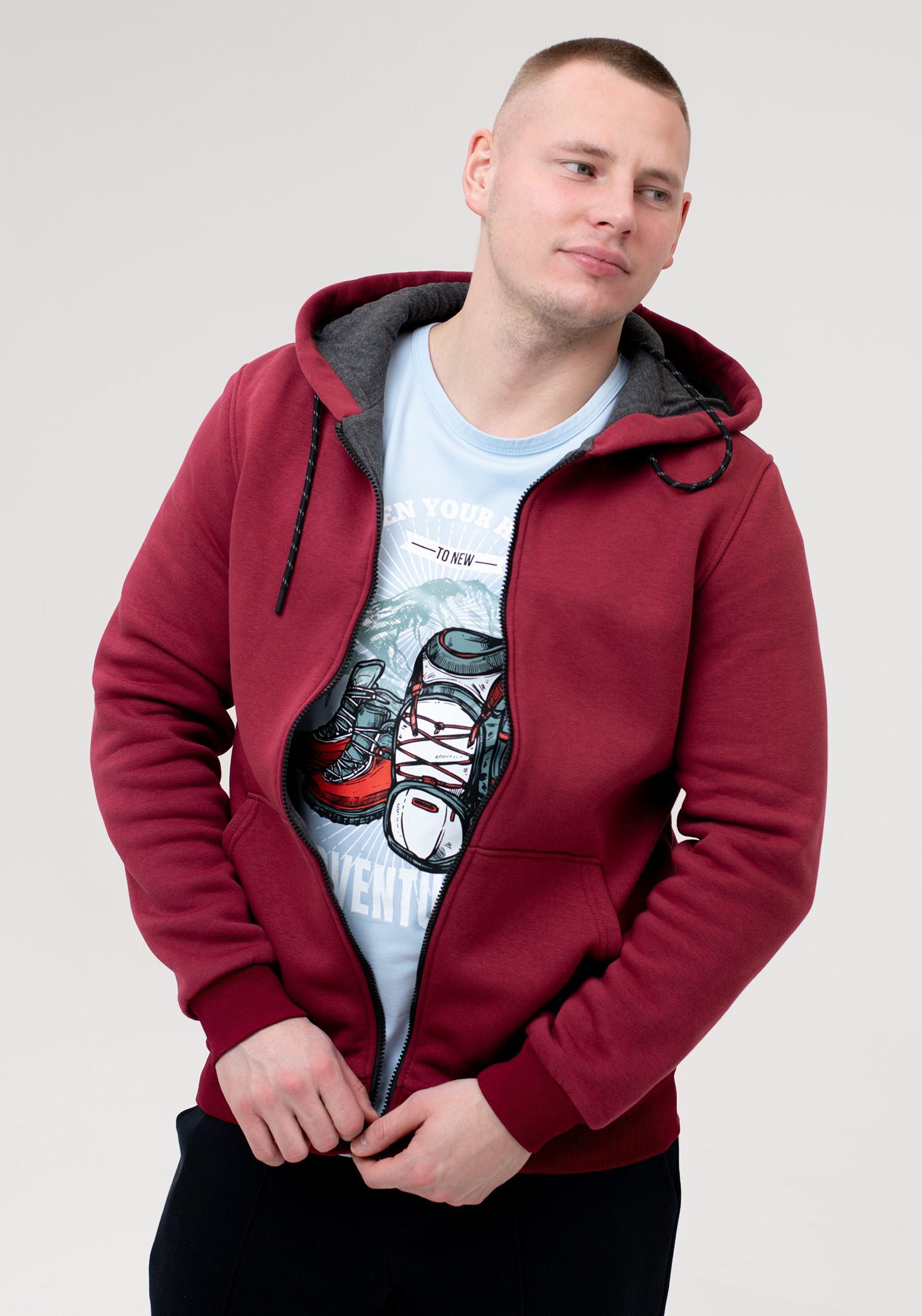 Утеплённая мужская толстовка выполнена из футера 3-х нитки с начесом, на подкладке из кулирной глади. Модель прямого покроя с капюшоном и вместительными накладными карманами-кенгуру. Застёжка-молния. Эластичная тесьма по низу изделия и рукавам. Капюшон регулируется шнуром, несъемный, изделие с подкладкой и очень удобным, функциональным внутренним карманом. Эта тёплая универсальная модель подходит для школы и спорта, на физкультуру, для активного отдыха, горнолыжного спорта, рыбалки, охоты и прогулок, туристических походов осенью, весной, зимой и холодными летними вечерами. Мужская толстовка на молнии (зипка) - это стильная трендовая модель, которая стала необходимым элементом базового гардероба современного мужчины, будет прекрасно сочетаться с любыми брюками: джинсами, карго или джоггерами. Такая толстовка станет лучшим подарком на любой праздник. Гладить с изнанки. Стирка при t не более 30С. Деликатный отжим, отбеливание запрещено