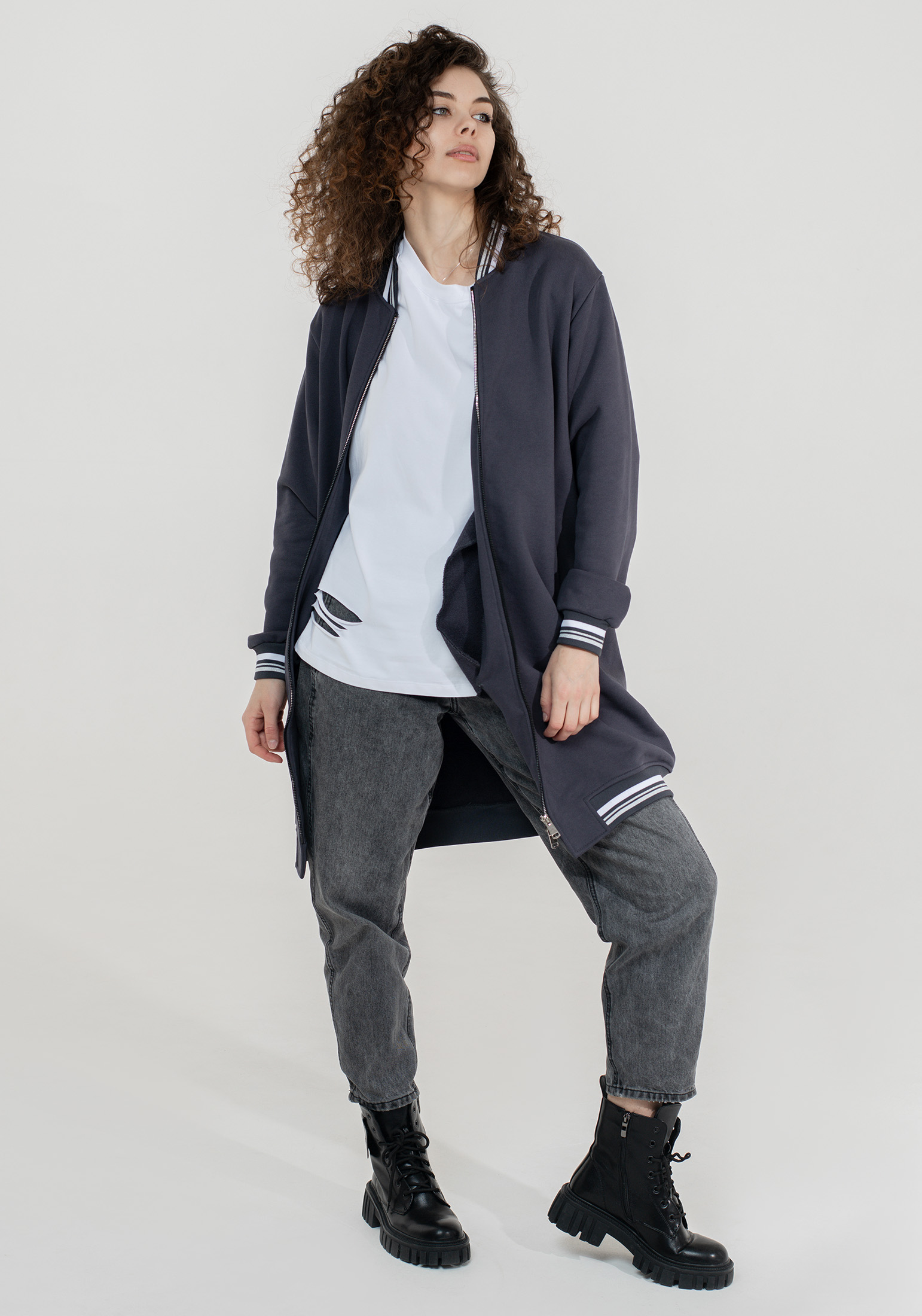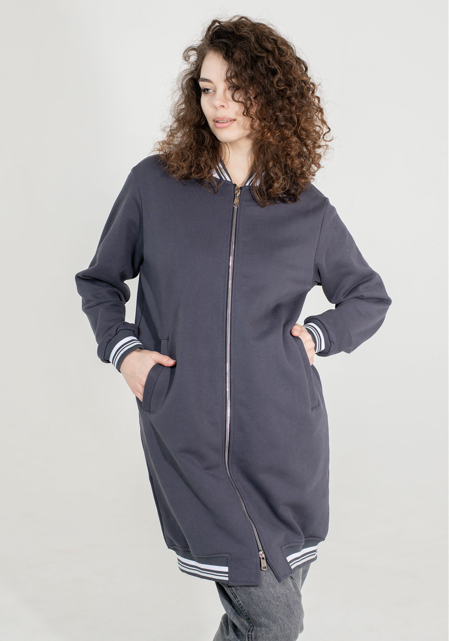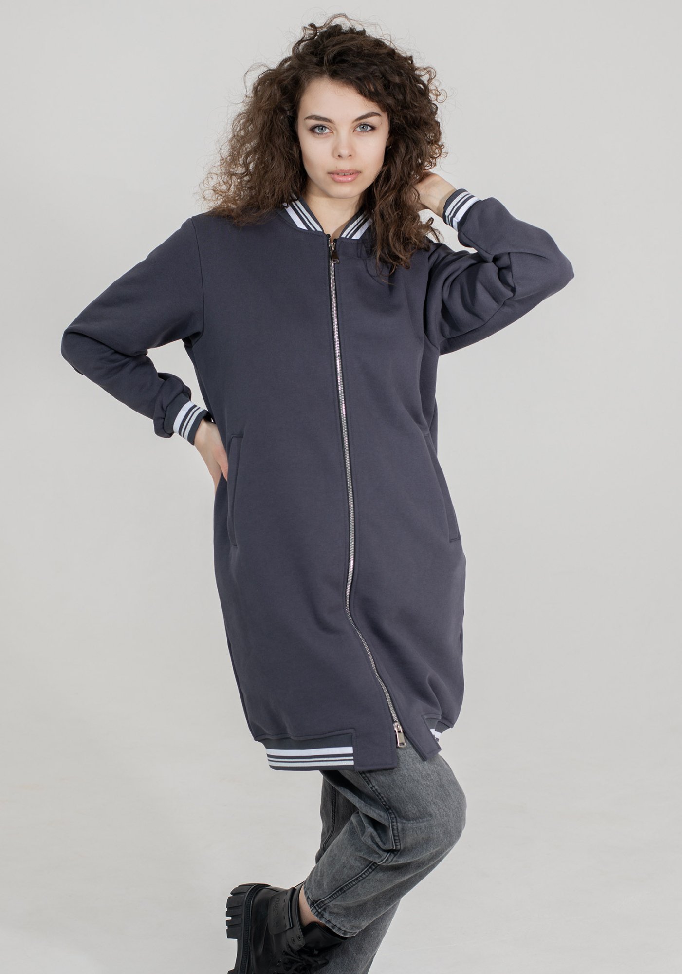 Оригинальный, стильный женский удлинённый бомбер на двухразъёмной молнии, выполнен из высококачественного турецкого футера 3-х нитки без начёса - тренд уличной моды street style! Модель прямого кроя, с втачными рукавами и вместительными карманами листочками. Эластичная тесьма по низу изделия и рукавам. На прогулку, в школу или университет, на встречу с друзьями - трикотажный бомбер станет Вашей незаменимой вещью в гардеробе, актуален в любой сезон и погоду. Отлично сочетается с брюками карго, джоггерами, джинсами, с кроп-топом, также образов «спорт-шик» с платьями и юбками мини и миди - Вы будете всегда выглядеть стильно! Наша одежда свободного кроя - идеальное решение на каждый день. Такой крой даёт ощущение комфорта, свободы и раскованности. Наша актуальная модель будет прекрасным подарком на новый год, к 8 марта, день святого Валентина, на день рождение, на день матери. Сделано в России с любовью к Вам! Гладить с изнанки. Стирка при t не более 30С. Деликатный отжим, отбеливание запрещено. При соблюдении наших несложных правил ухода одежда DS будет радовать Вас долгое время!