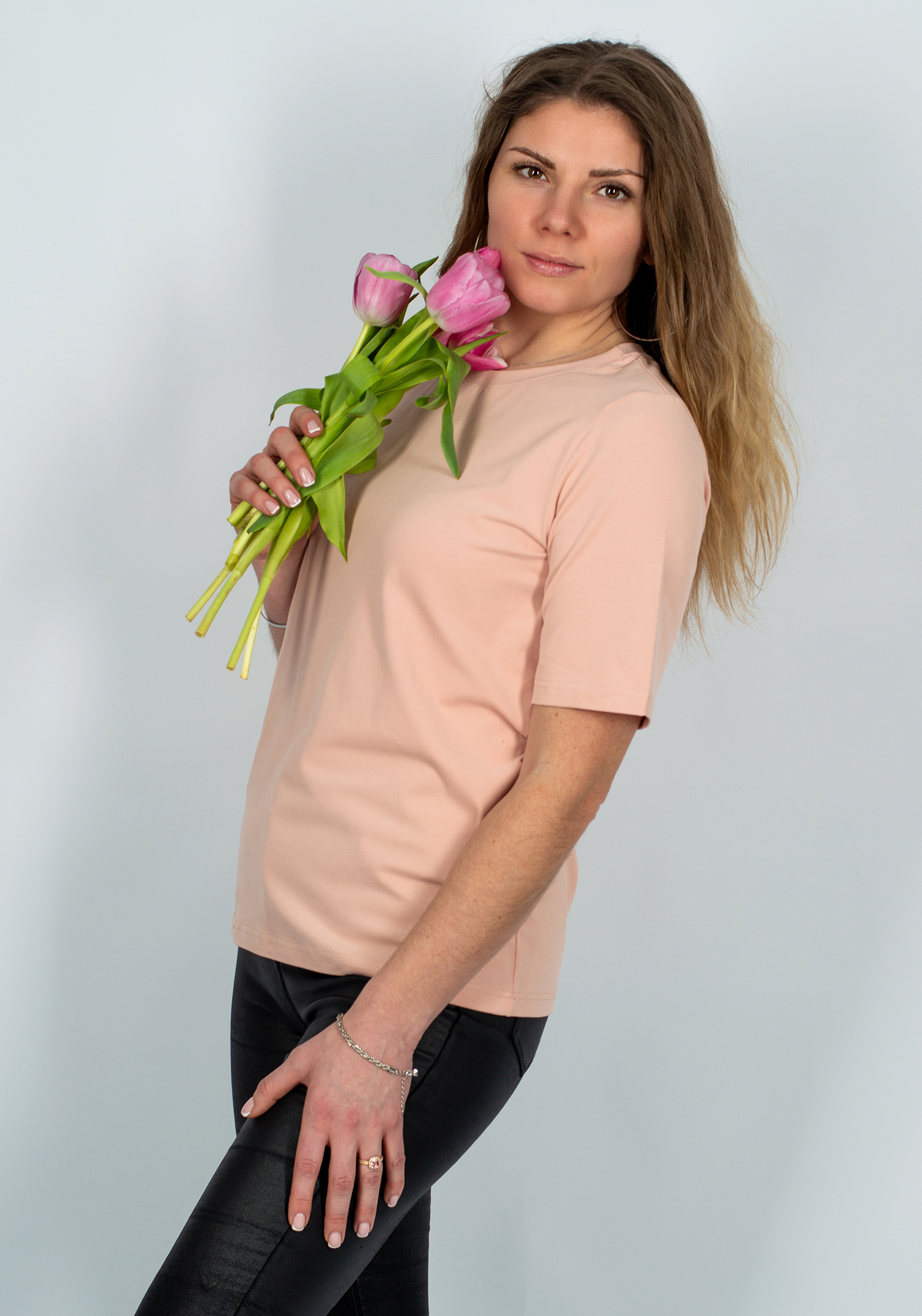 Стильная женская футболка, выполнена из нежного, мягкого, бархатистого полотна с peach эффектом. Футболка свободного силуэта, с удлинёнными рукавами и круглым вырезом горловины. Наши невероятно удобные, стильные футболки отлично сочетаются с шортами, джинсами и различной длины юбками. Свободный крой и элегантная форма рукавов не только придают изделию стильный и модный вид, но и гарантируют его обладательнице комфорт даже в самые жаркие дни. Такая стильная модель идеально подойдёт в качестве подарка маме, подруге, дочке и любимой на праздник. Гладить с изнанки. Стирка при t не более 30С. Деликатный отжим, отбеливание запрещено.