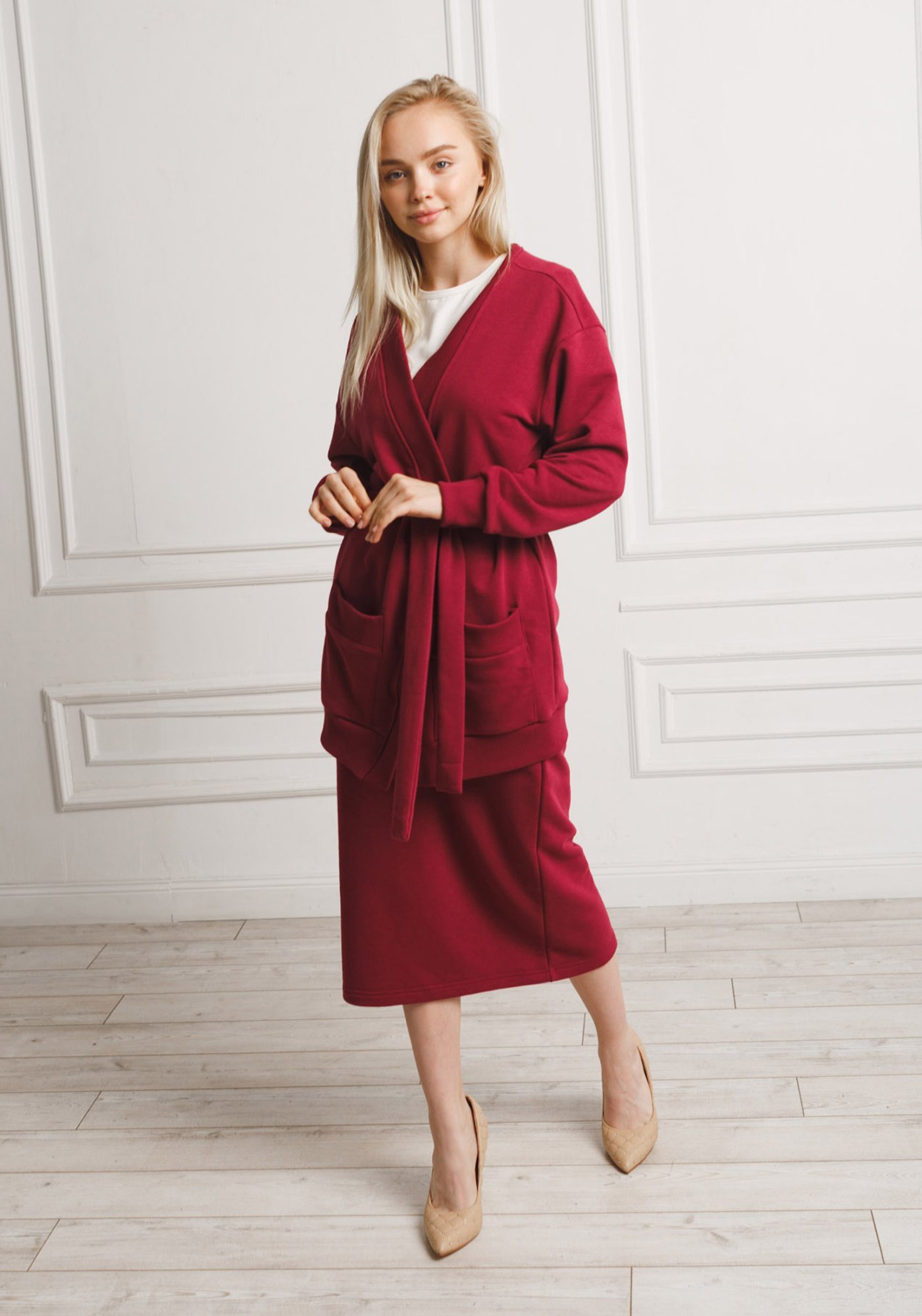 Невероятно удобный и практичный кардиган с поясом из высококачественного турецкого футера 3-ех нитки без начеса со сдвоенными размерами. На полочке изделия два вместительных накладных кармана. На спинке изделия брендированная нашивка из экокожи. Наш элегантный кардиган сделает ваш силуэт классическим, деловым, нарядным. Модный трикотажный кардиган – это совершенно универсальный элемент гардероба, с ним можно создать красивые образы на работу, в институт, в школу, в офис, на вечеринку, сочетая с совершенно любой обувью. Кардиган согреет Вас не только осенью или зимой, но ранней весной, и прохладным летним вечером. Гладить с изнанки.