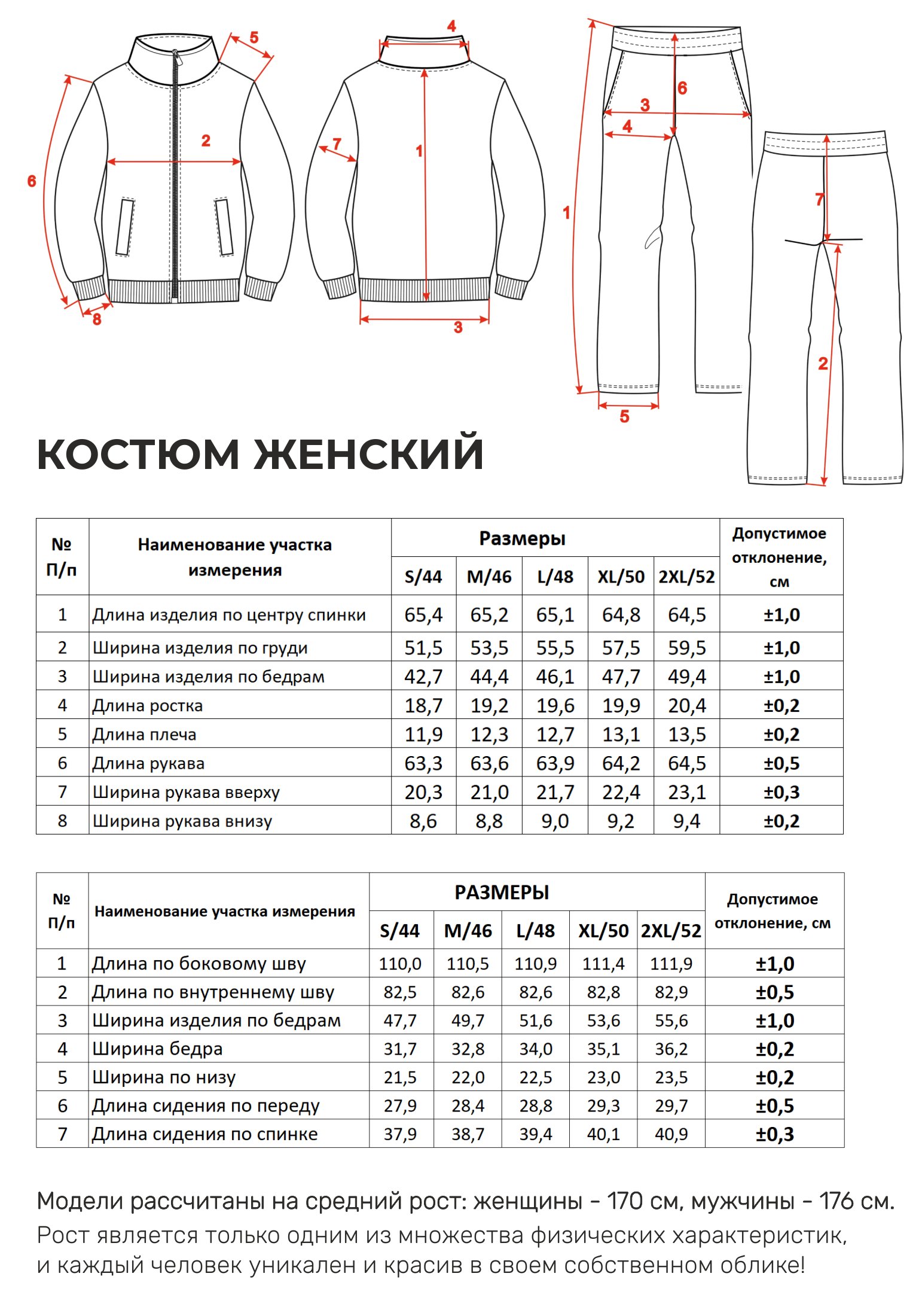 Стильный и комфортный женский спортивный костюм, состоящий из толстовки на молнии (зипки) с воротником стойкой и прямых спортивных брюк, модель выполнена из премиального футера 2-ух нитки без начеса. На поясе брюк удобная и широкая резинка, два вместительных боковых кармана. На полочке толстовки вместительные прорезные карманы с листочками, изделие без подкладки. Трендовый дизайн делает наш костюм стильной частью повседневного женского гардероба. Свободный крой не стесняет Ваших движений. Женский спортивный костюм - это стиль, комфорт и практичность. Отличный вариант для занятий спортом, прогулок, рыбалки, охоты, похода и повседневной носки. Костюм с толстовкой на молнии идеально носить весной, летом и осенью. Наша актуальная модель будет прекрасным подарком на новый год, к 8 марта, день святого Валентина, на день рождение, на день матери. Шикарная модель для шикарной девушки, идеальный презент маме, подруге, дочке и любимой на любой праздник! Сделано в России с любовью к Вам! Гладить с изнанки. Стирка при t не более 30С. Деликатный отжим, отбеливание запрещено.