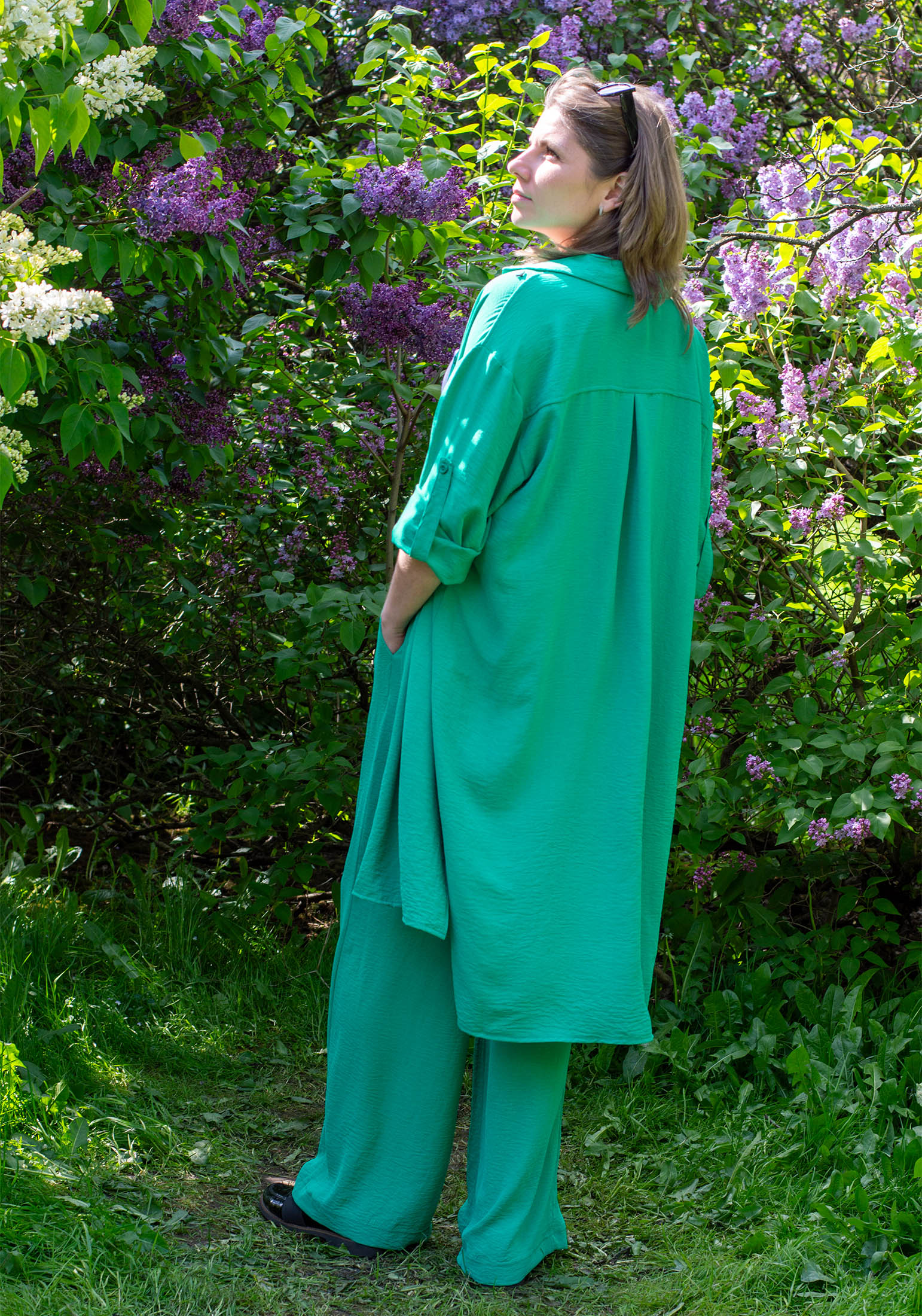 Летний женский костюм - идеальный выбор для стильных и модных девушек и женщин. Наш костюм состоит из брюк палаццо свободного силуэта и удлинённой рубашки с поясом. Комплект обладает оригинальным дизайном, изделия выполнены из текстильного жатого полотна дорна. Костюм ОВЕРСАЙЗ из легкой струящейся ткани - отличный вариант для повседневной носки, особенно в летнюю жаркую погоду. На поясе брюк удобная и широкая резинка, два вместительных функциональных боковых кармана. Легкие и свободные брюки палаццо универсальны, их можно носить на пляже, дома и на отдыхе, с рубашкой и с любым другим верхом: топом, майкой, футболкой, блузкой, кофтой. Рубашка оверсайз с пуговицами и прямые брюки на резинке создадут идеальный комплект для любого торжества. Так же комплект можно носить по раздельности, создавая множество стильных образов. Рубашку можно носить отдельно и с любым низом и как платье с поясом. Универсальный рукав длинный, но его легко трансформировать в рукав 3/4, благодаря удобной застежке. Рубашку можно носить как платье летнее или домашнее, так и как легкую накидку в прохладные вечера. Наша одежда свободного кроя - идеальное решение на каждый день. Такой крой даёт ощущение комфорта, свободы и раскованности - настоящая находка на жаркое лето! Отличный и незаменимый вариант повседневного гардероба, обеспечивающий свободу движений. Легкость, удобство, отличная воздухопроницаемость - все это делает нашу модель идеальным выбором! Удобный крой нашего костюма подойдет как для женщин и девушек с идеальными параметрами, так и для представительниц больших форм. Костюм прекрасно подойдет для дома, для отдыха на пляже, на море. Он будет идеален как пляжный вариант, благодаря легкой быстросохнущей ткани. Наша актуальная нарядная модель будет прекрасным подарком на новый год, к 8 марта, день святого Валентина, на день рождение, на день матери. Сделано в России с любовью к Вам! Гладить с изнанки. Стирка при t не более 30С, ткань после стирки дает небольшую усадку! Деликатный отжим, отбеливание запрещено. При соблюдении наших несложных правил ухода одежда DS будет радовать Вас долгое время!