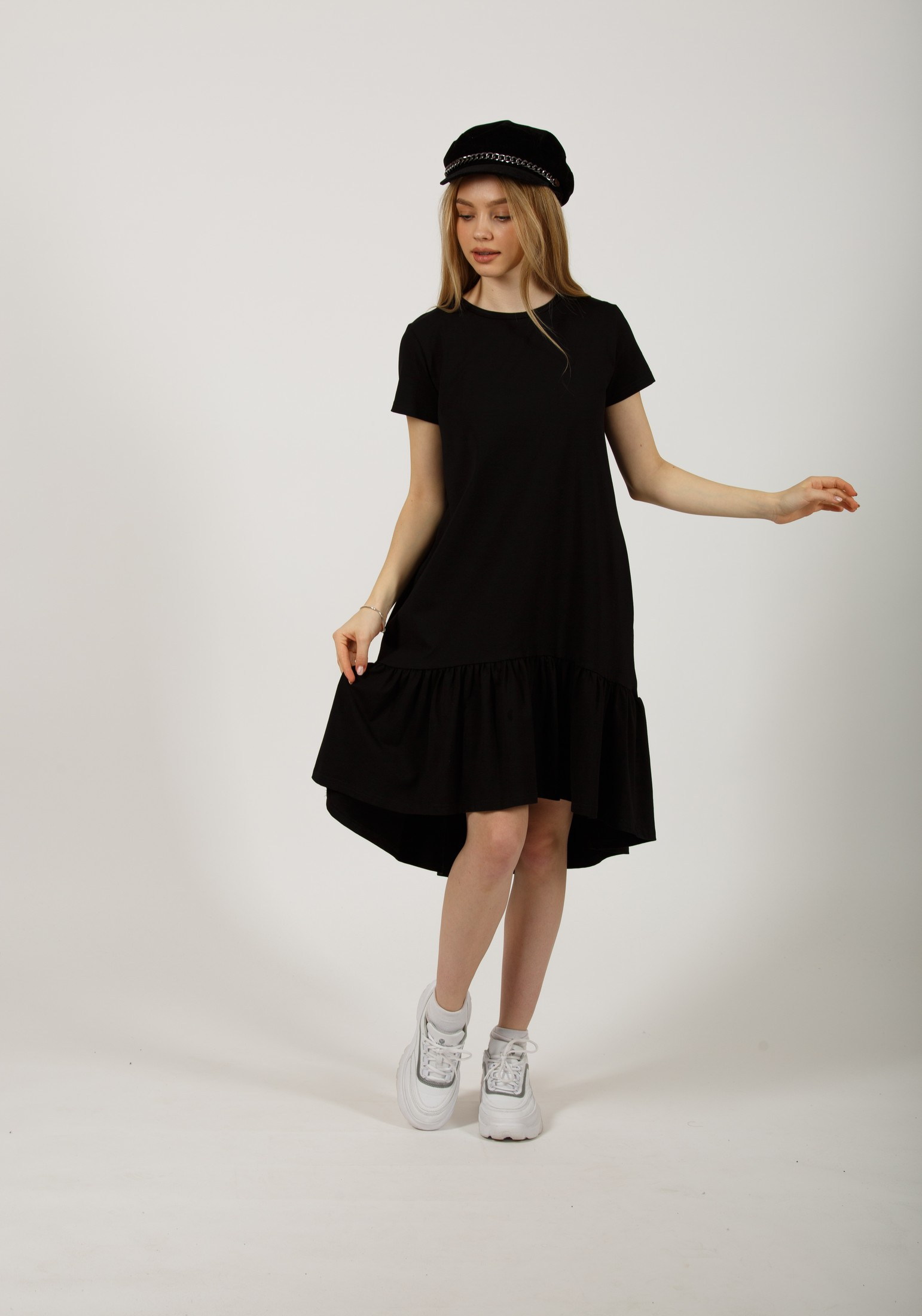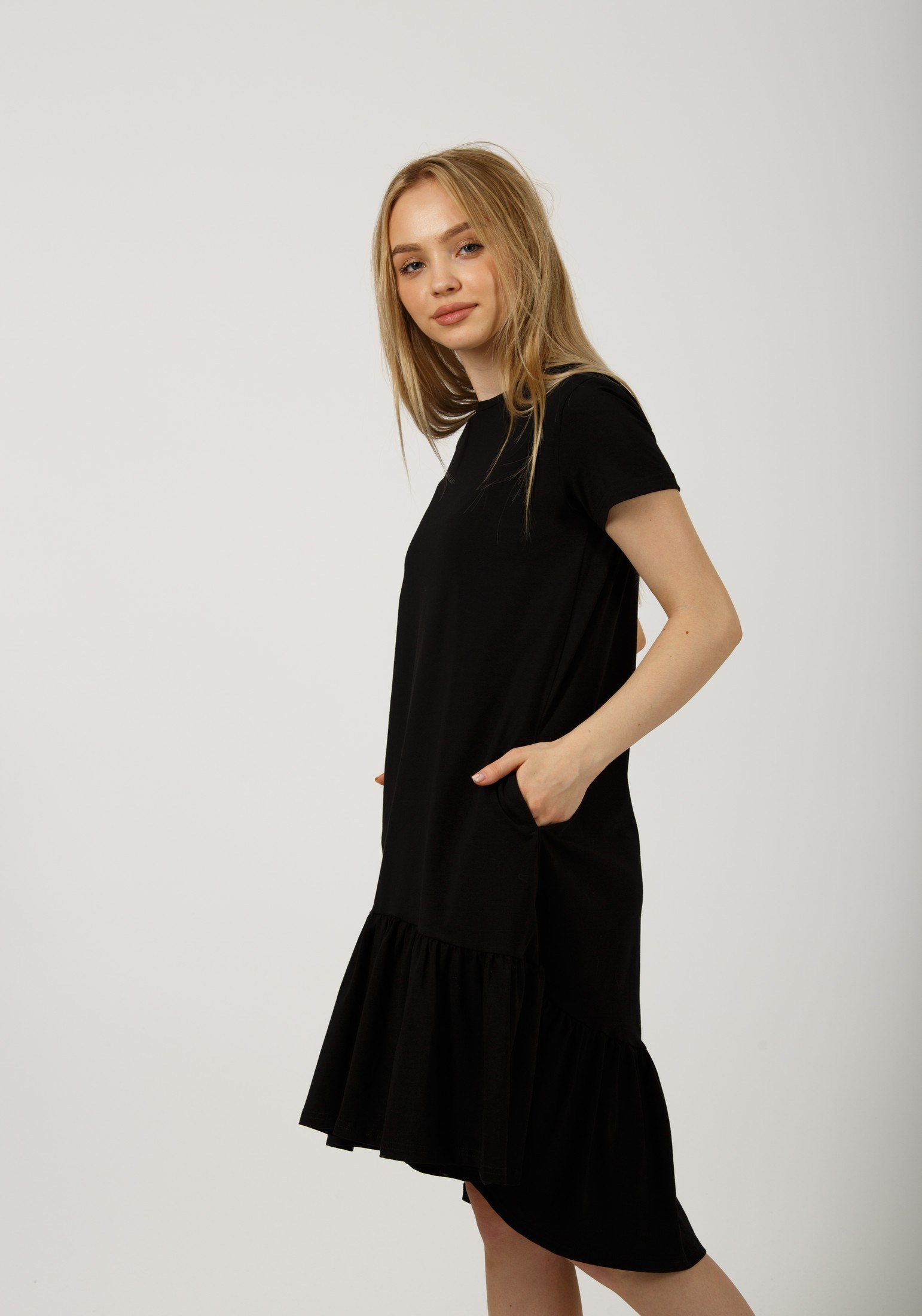 Стильное платье, свободного кроя, выполнено из премиального турецкого трикотажа. Это модель, которая должна быть в гардеробе каждой девушки. Платье с футболочнымвтачным рукавом, с женственной оборкой по низу изделия. Отличный вариант на каждый день, особенно в жаркий летний день: в офис, на прогулку, на отдых и даже дома. Идеально смотрится на любой фигуре, не сковывает движения и скрывает все недостатки. Гладить с изнанки. Стирка при t не более 30С. Деликатный отжим, отбеливание запрещено.