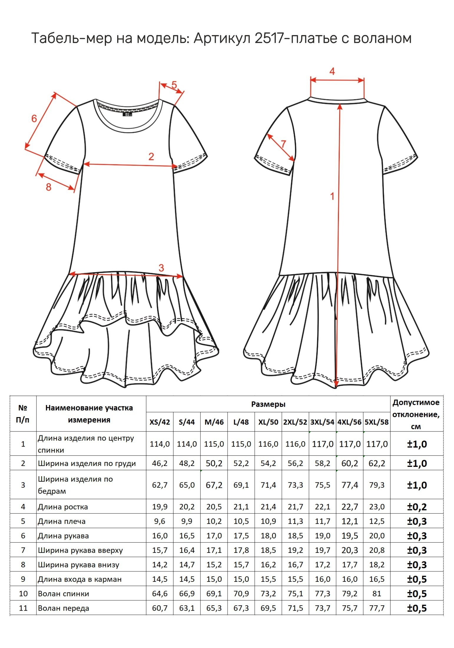 Таблица размеров