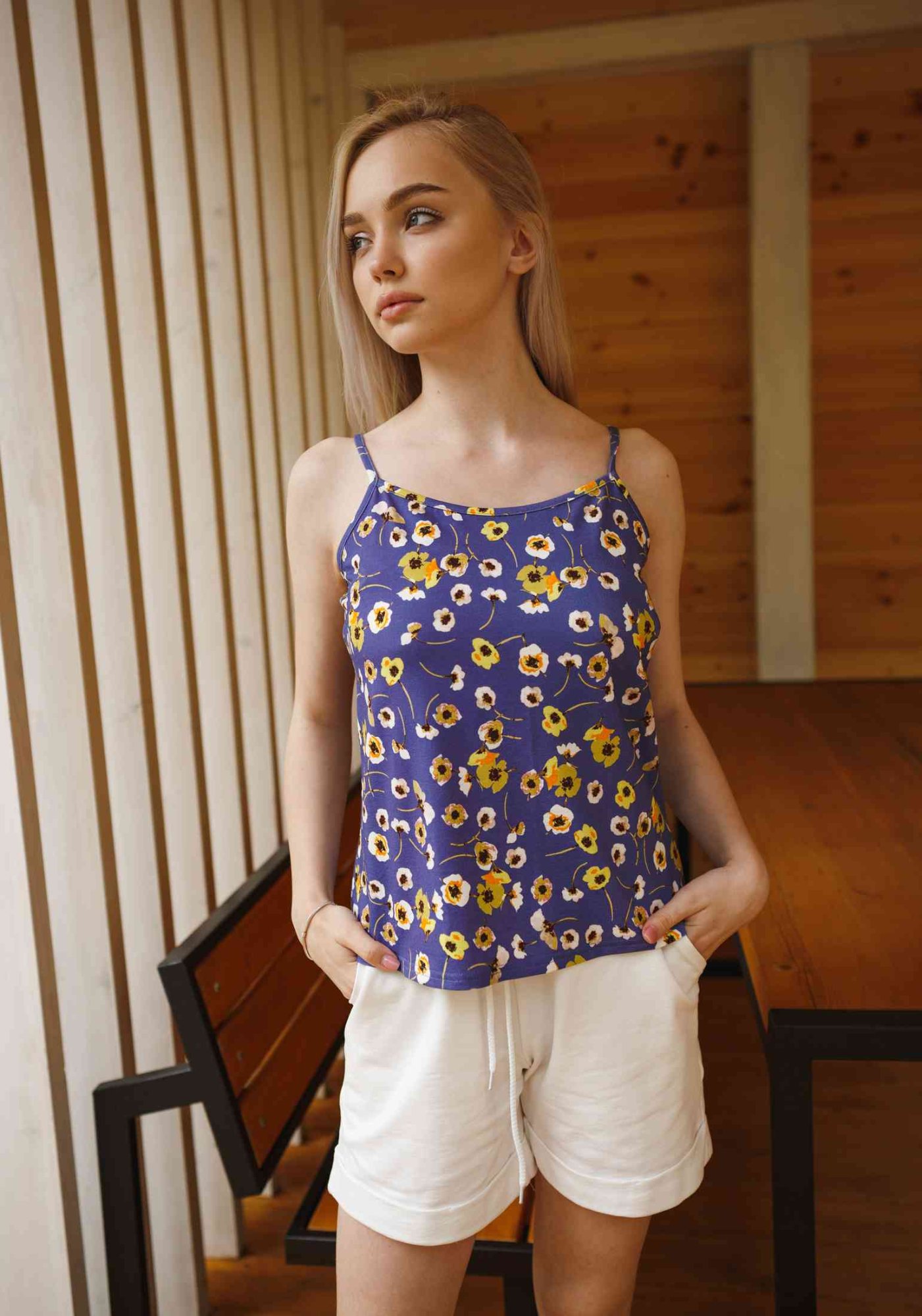 Женский топ на брителях, выполнен из лёгкой вискозной ткани различных оттенков. Изделие очень мягкое и комфортное в носке. Данная модель отлично сочетается с различными предметами одежды, будь то джинсы, классические брюки, шорты или юбка. А летний цветочный рисунок придаст вашему образу яркости и индивидуальности. Гладить с изнанки. Стирка при t не более 30С. Деликатный отжим, отбеливание запрещено.